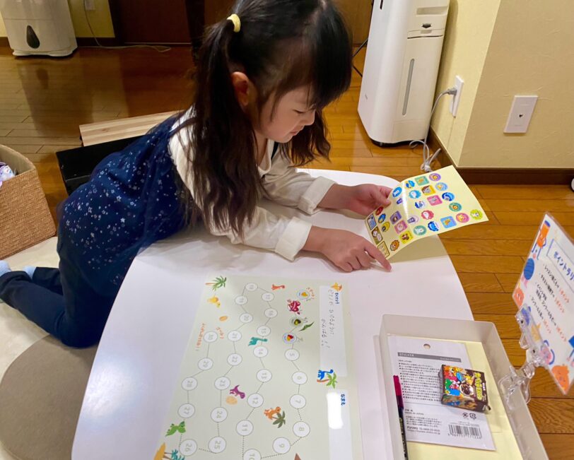 シールを貼る時間になると、「え〜、どうしようかなぁ!?」と毎回じっくり悩みます。