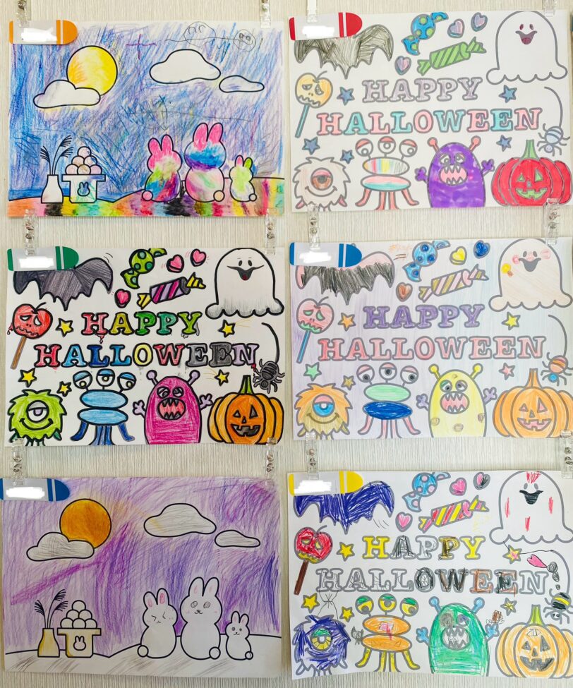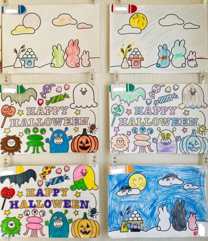 🎃ハロウィンのイラストを選んだ子たちは、細かいところまでよく見て工夫していて、色使いにもセンスが感じられました。
