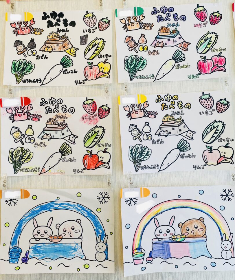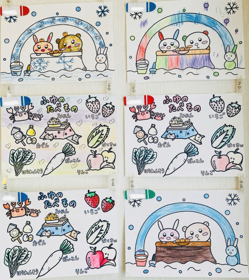よく見ると、食べものの色の使い方がとても丁寧で、一色ではなく、少しずつ色を重ねてグラデーションにしている子がたくさんいました。