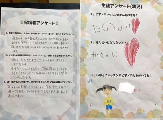 3,ピアノがさいしょはわからなかったけど、ピアノをならっていっぱい知れたし、ピアノがたのしくなったから♪